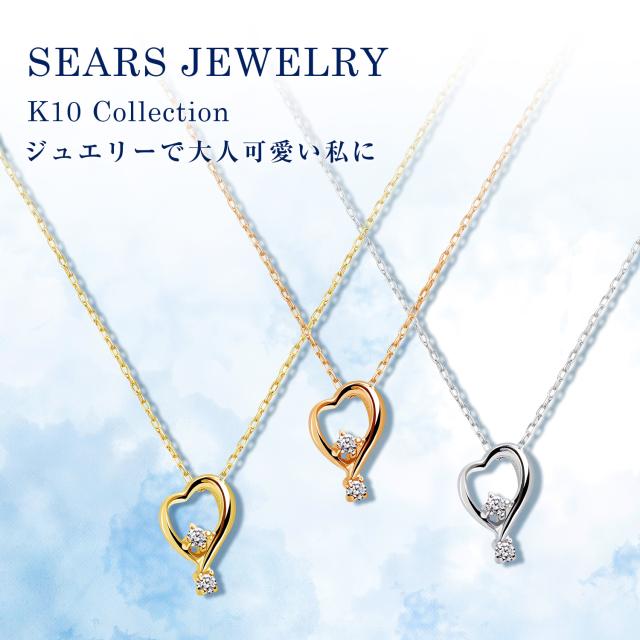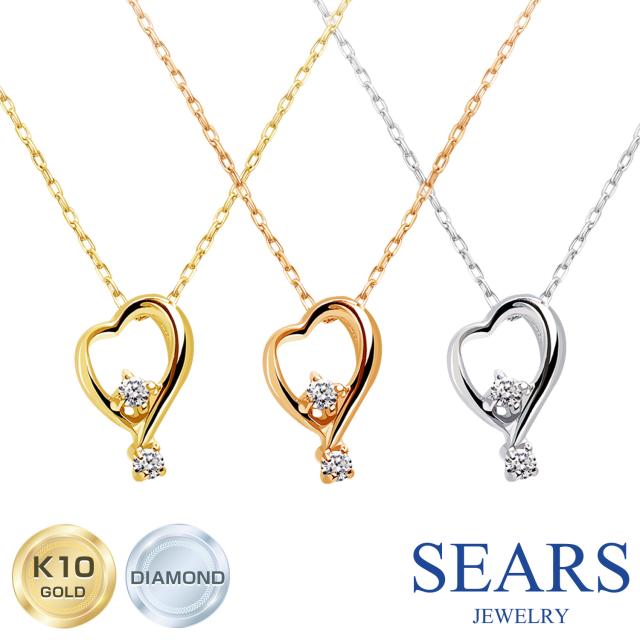 シアーズ ネックレス ハート レディース プレゼント K10 ゴールド WG YG PG ダイヤモンド ダイヤ 0.01ct ジュエリーボックス sp51-0003 クリスマス_wp