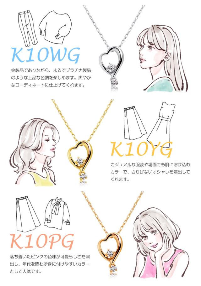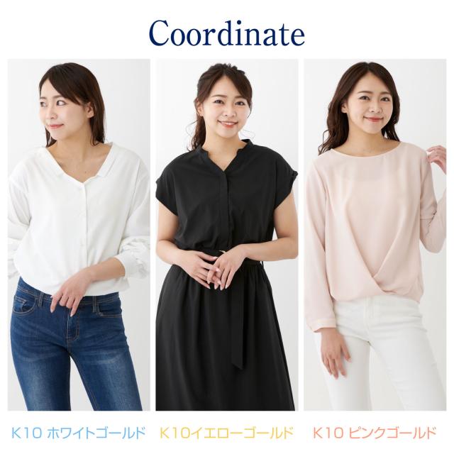 K10はホワイトゴールド、イエローゴールド、ピンクゴールドの3色からお好きな色をお選びいただけます。