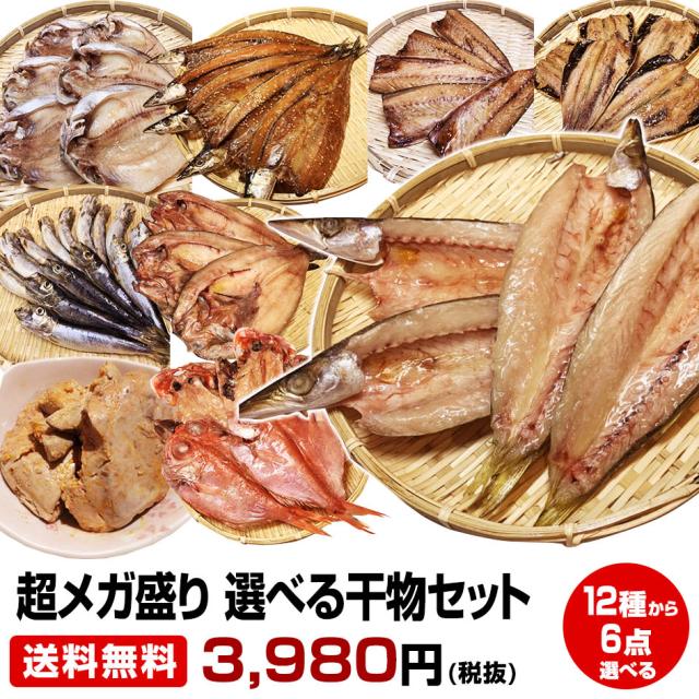 【父の日 お中元 ギフト 誕生日プレゼント 内祝 暑中見舞 御中元】★沼津直送超メガ盛り 一品一品選べる 6点 干物セット★金目 沼津産鯵干し 北海道 産ホッケ他33種類の中から6点チョイス!送料無料 お試し 保存食 お買得 まとめ買い お取り寄せ お取り寄せグルメ