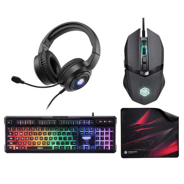 ゲーミングデバイスセット マウス キーボード ヘッドセット マウスパッド 有線 ゲーム エントリーモデル グリーンハウス GH-GMSETA/1578