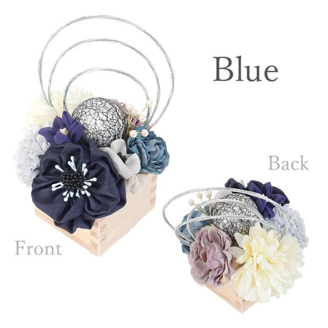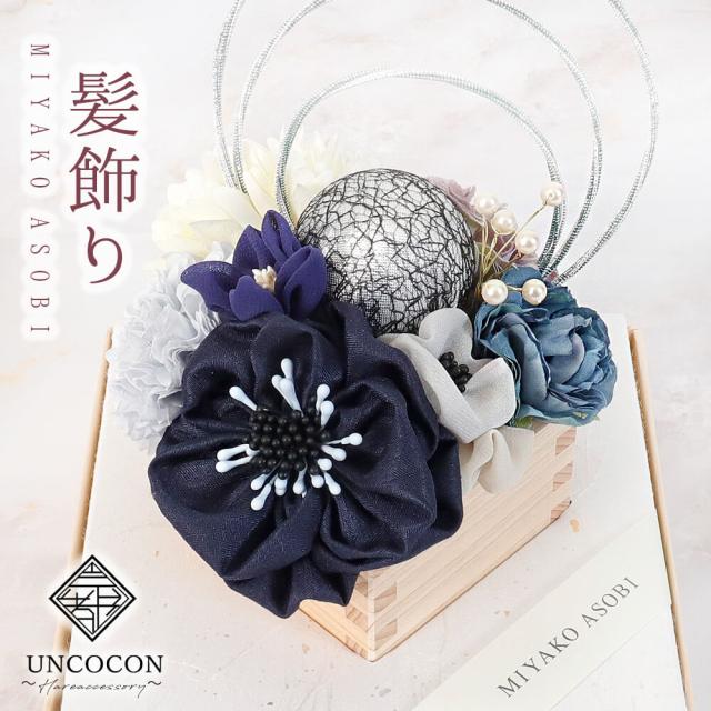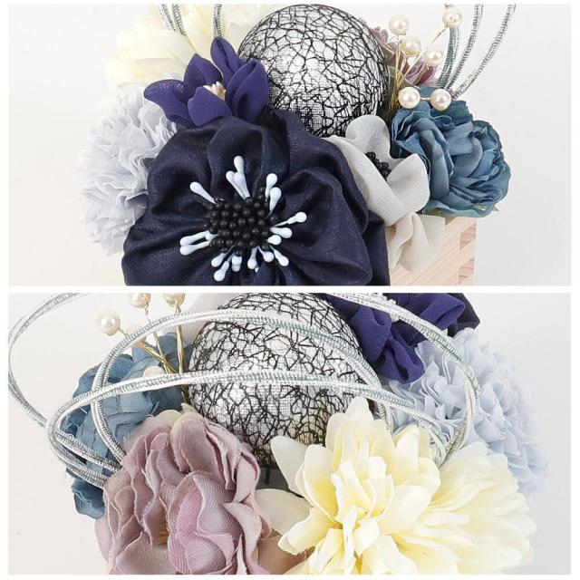 髪飾り ヘッドドレス つまみ細工 水引 成人式 ブルー 青 水引 花かんざし Uピン 袴 振袖 着物 和装 花 卒業式