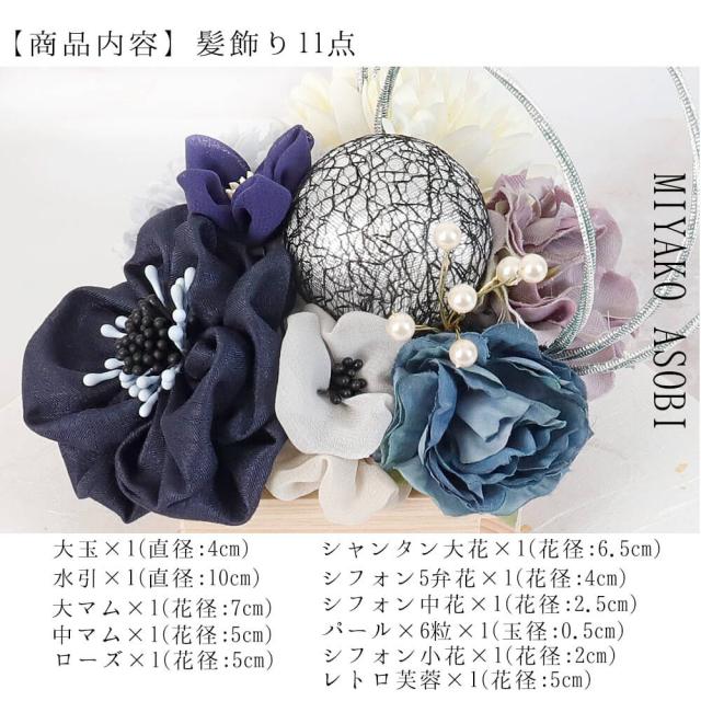成人式 卒業 髪飾り 11点セット ブルー 結婚式 和装