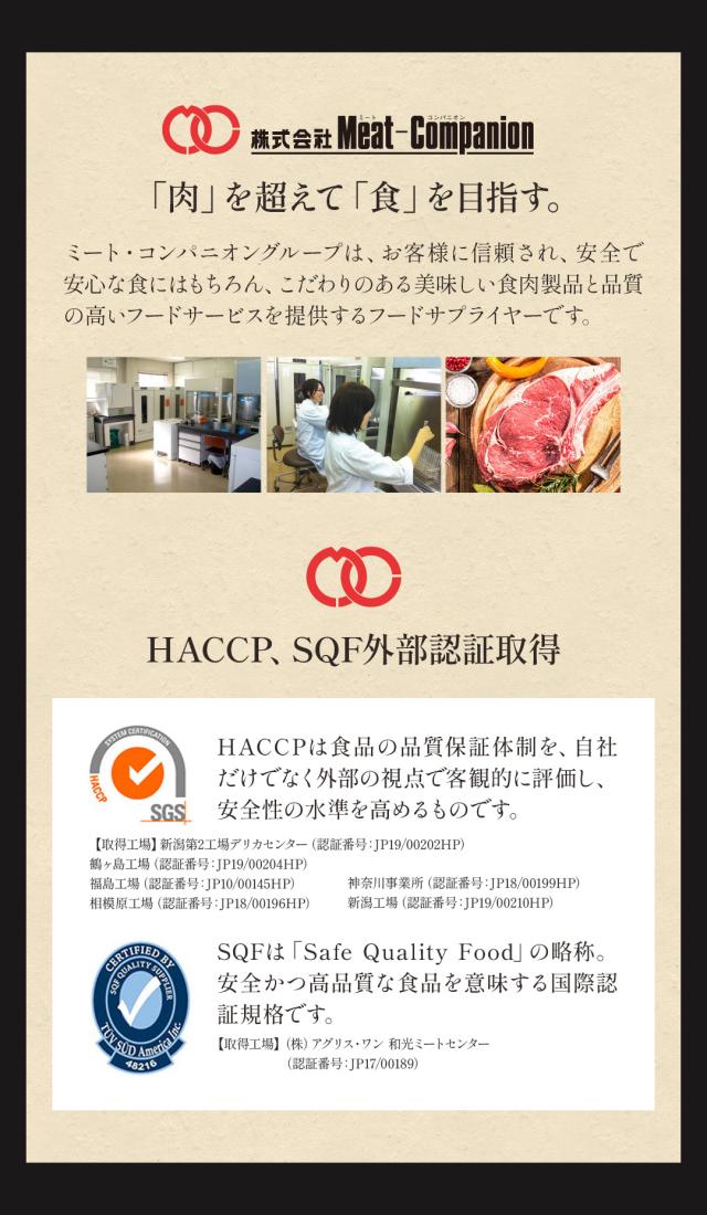 | 原材料 | 食肉等(牛肉、豚肉、牛脂)、ソテーオニオン、つなぎ(パン粉、卵白、牛乳)、トマトケチャップ、酵母系調味料、食塩、香辛料、(原材料の一部に卵、乳、小麦、大豆、牛肉、豚肉を含む) |