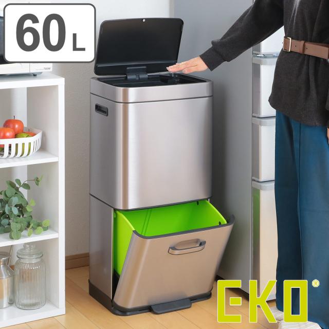 EKO ゴミ箱 35L+25L ヒマラヤセンサービン ( イーケーオー ごみ箱 60L 35リットル 25リットル 2分別 センサー ペダル 電池式 ふた付き 1年保証付き 大容量 ゴミ箱 分別)