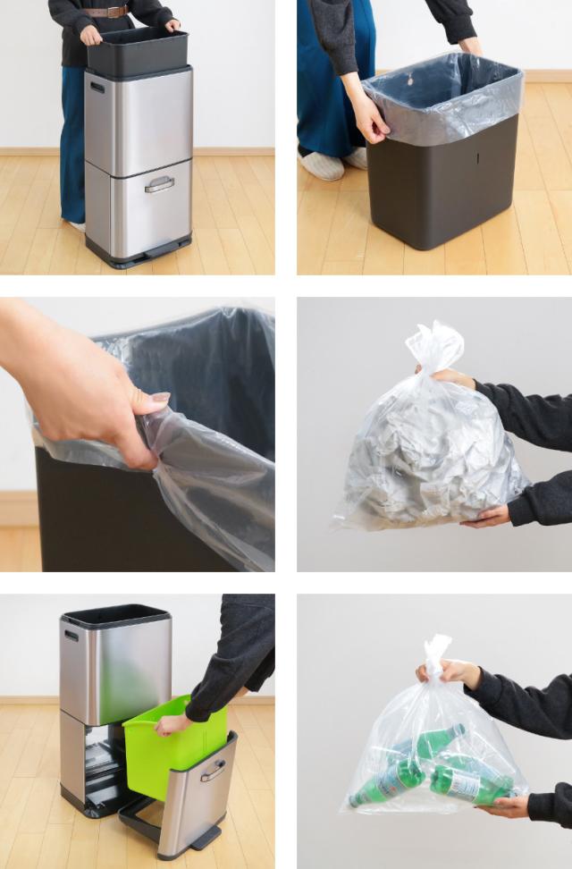 ※撮影時に使用したゴミ袋は、上段45L(縦80×横65cm)、下段20L(幅52cm×高さ60cm)です。