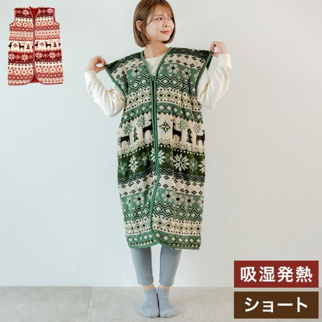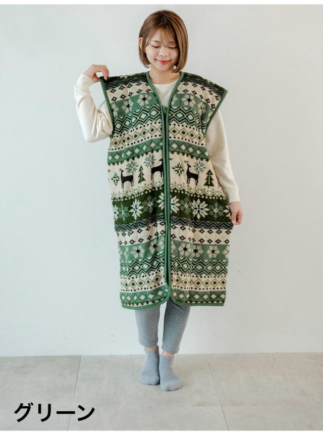 あったか着る毛布 ノルディック柄 吸湿発熱 毛布スリーパー ショート 65×100cm 北欧柄 エンジ グリーン 冬 あったか 着るブランケット(代引不可)【送料無料】