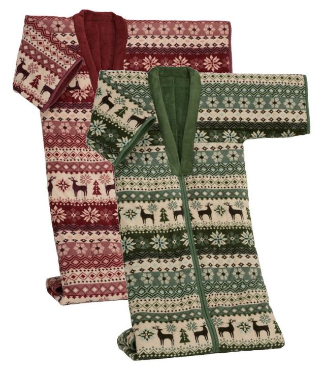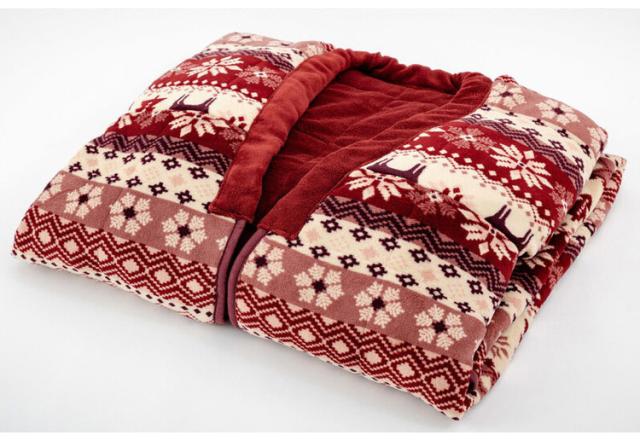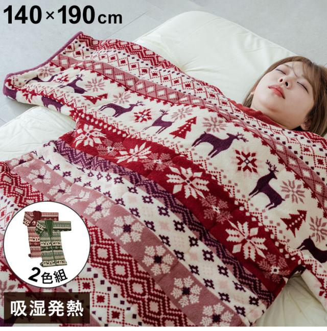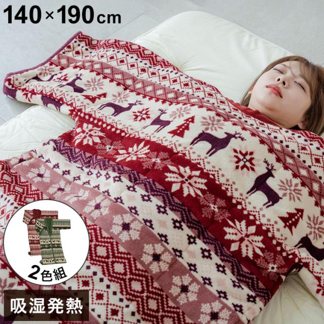 ノルディック柄 かいまき毛布布団 2色組 エンジ・グリーン 140×190cm 肩口からつま先まで スッポリガード 北欧柄 冬 あったか(代引不可)【送料無料】