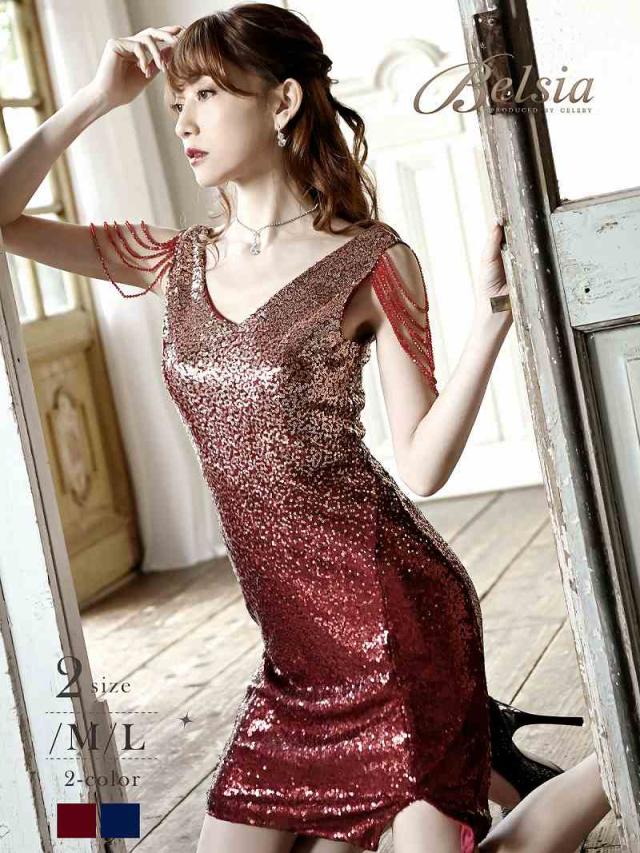 キャバドレス キャバ ドレス キャバクラ ミニドレス パーティードレス Belsia ミディ丈 グラデーション キャバ嬢 クリスマスドレス
