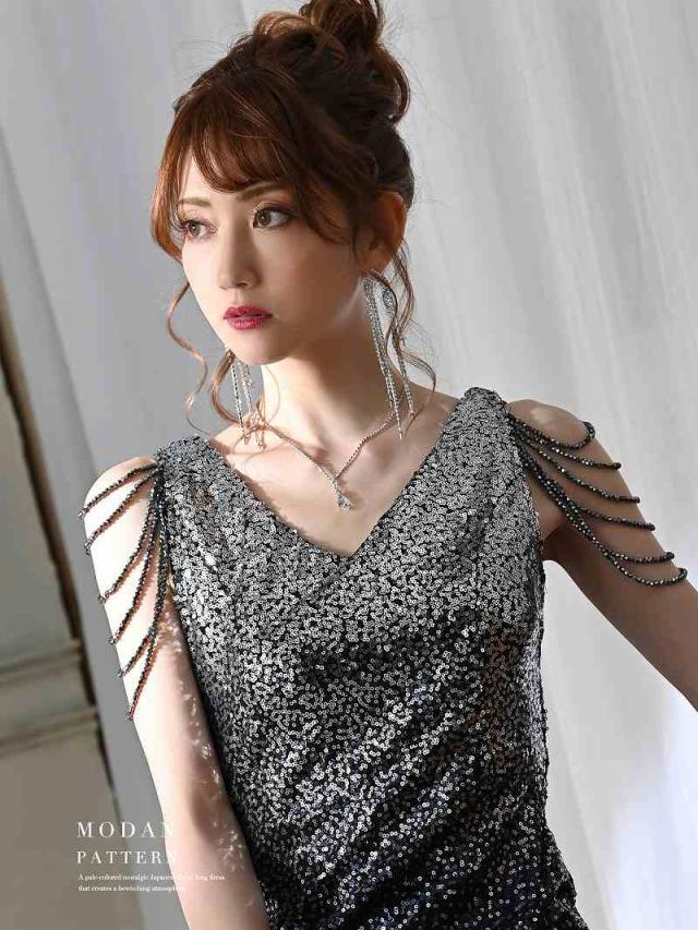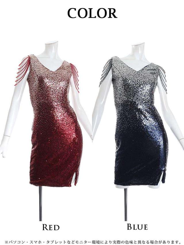 ☆煌めくスパンコールでグラデーションデザインを施したパーティードレスは圧倒的な華やかさを放つキャバドレスです。