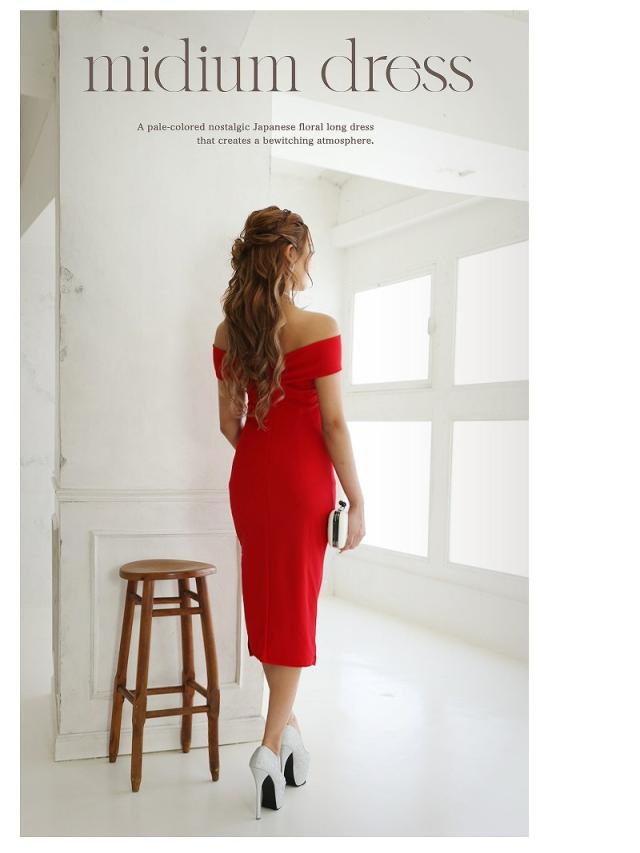 一部予約販売 ミニドレス RyuyuChick ミモレ丈 無地 オフショル タイト 激安 キャバ ドレス キャバドレス ミニド