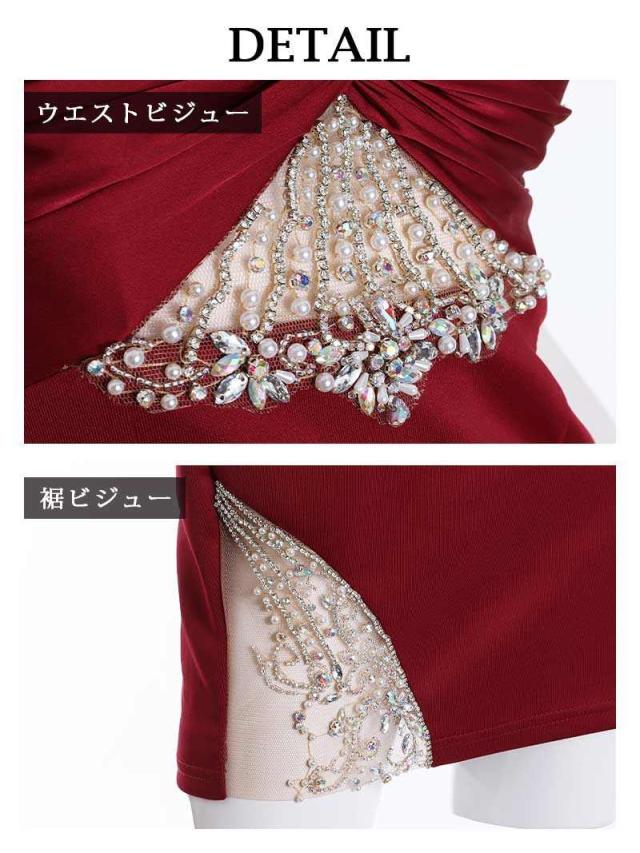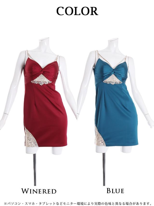 ☆随所にあしらった煌めくビジューが高級感ある華やかさを演出するミニドレスはビジューストラップになっており素肌の上で妖艶な輝きを放つセクシーなキャバクラドレスです。