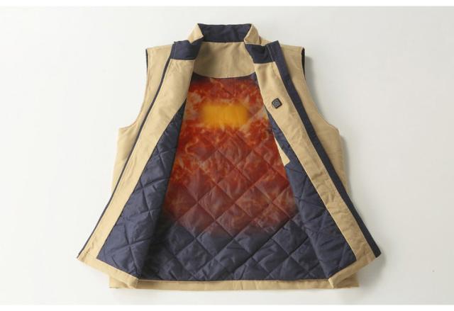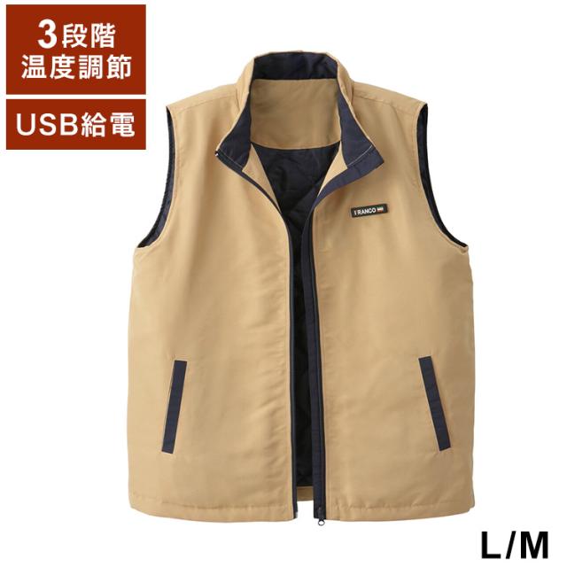 電熱ヒーターベスト ベージュ Mサイズ Lサイズ 携帯バッテリー式 電熱ベスト 旅行 アウトドア キャンプ 冬 あったか(代引不可)【送料無料】