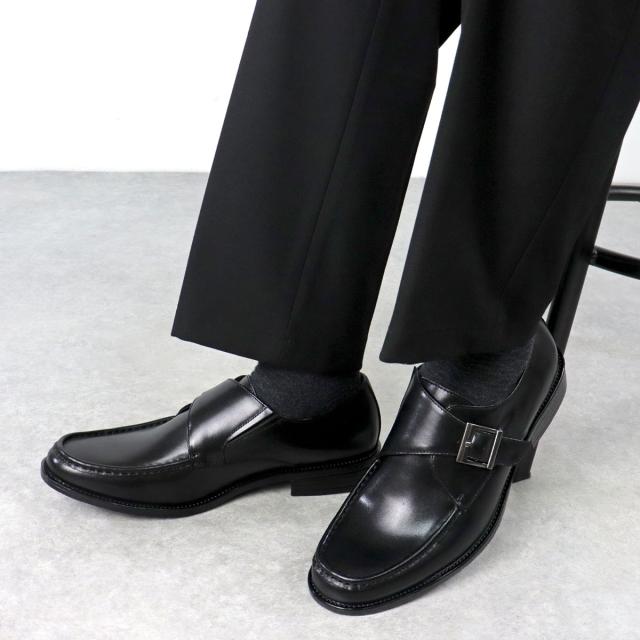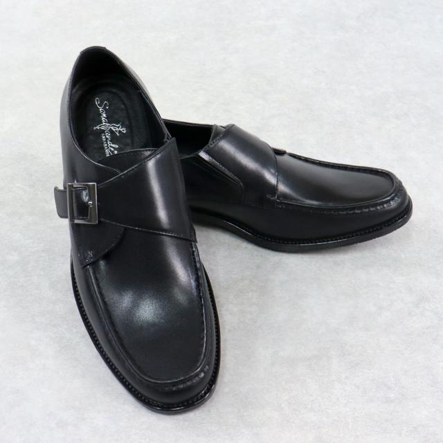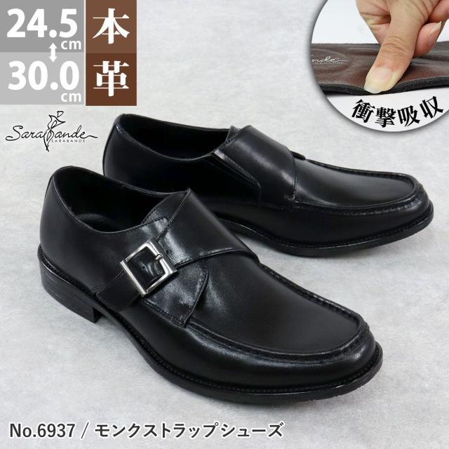ビジネスシューズ 本革 革靴 レザー クッションインソール 防滑ソール 3E 歩きやすい 履きやすい メンズ シングルモンクストラップ 大きいサイズ No.6937 24.5-30.0cm 黒 ブラック SARABANDE サラバンド キングサイズ 通勤 オフィス 外回り 営業 紳士靴 カジュアル