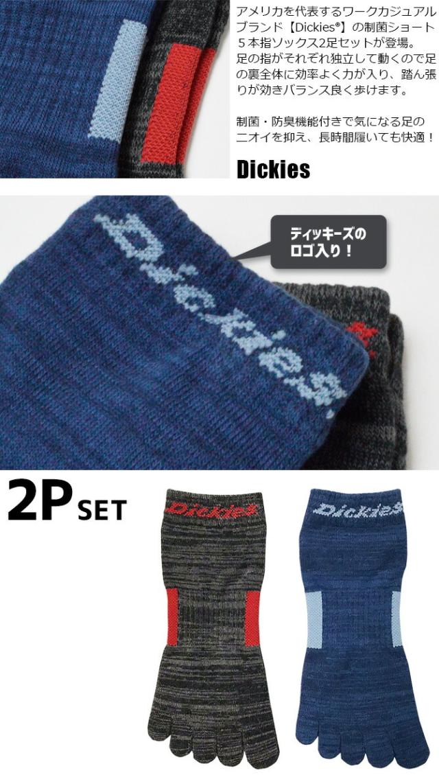 ディッキーズ 制菌ショート5本指ソックス2P 2足セット D-3131 メンズ Dickies 靴下 防臭 ショートソックス オールシーズン ワーク 作業服 作業着