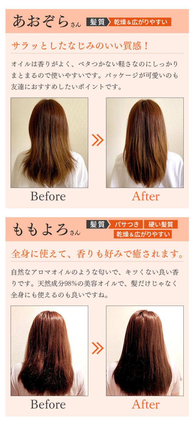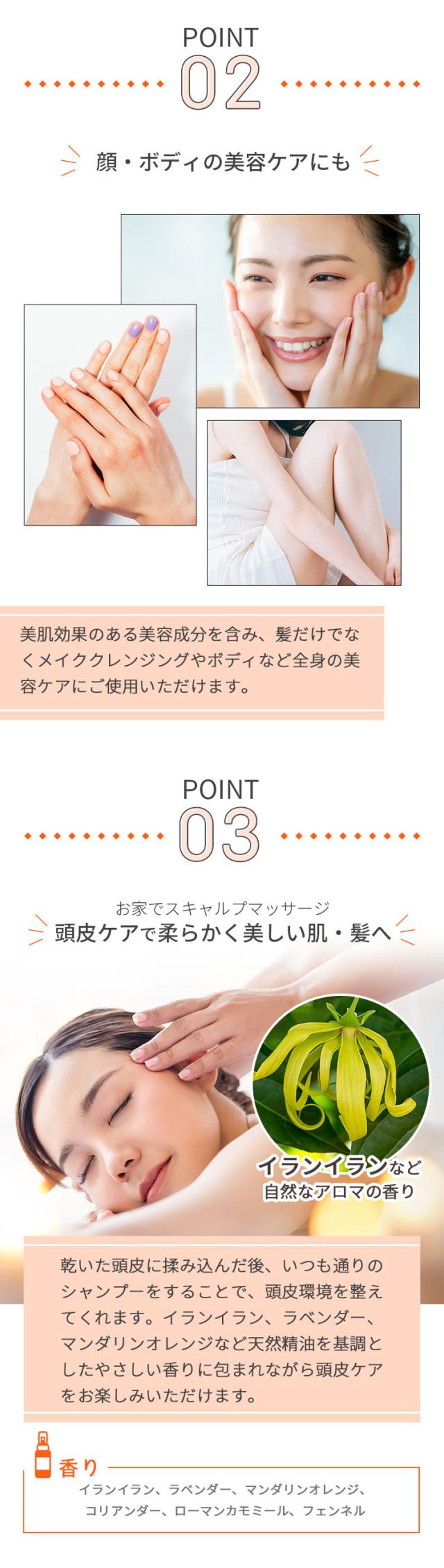| 使用方法 | 適量を手に取り、髪やお肌など使用したい部位によくなじませてください。 |