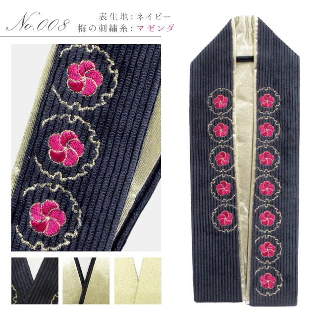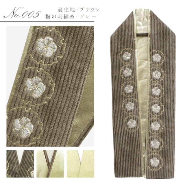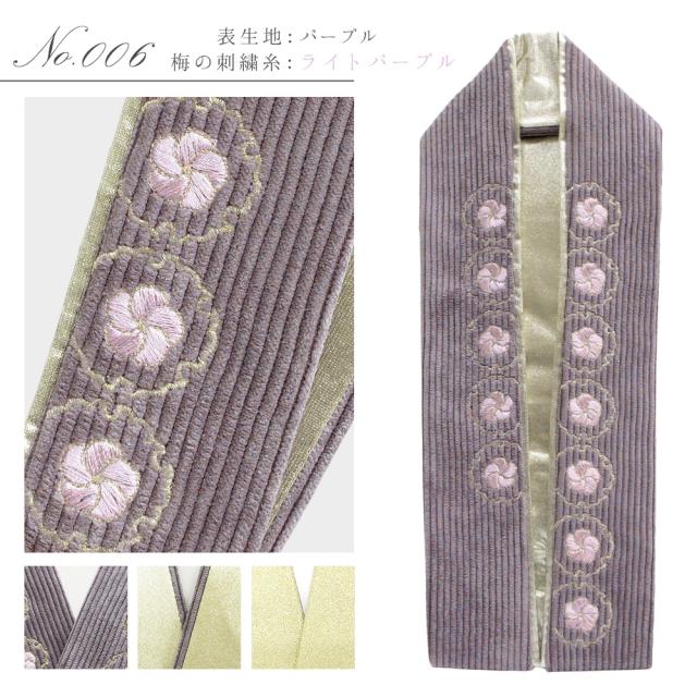 コーデュロイ生地のふっくらとボリュームのある素材感と、華やかな雪輪と梅の刺繍が、上品かつ可愛らしい衿元を演出します◎