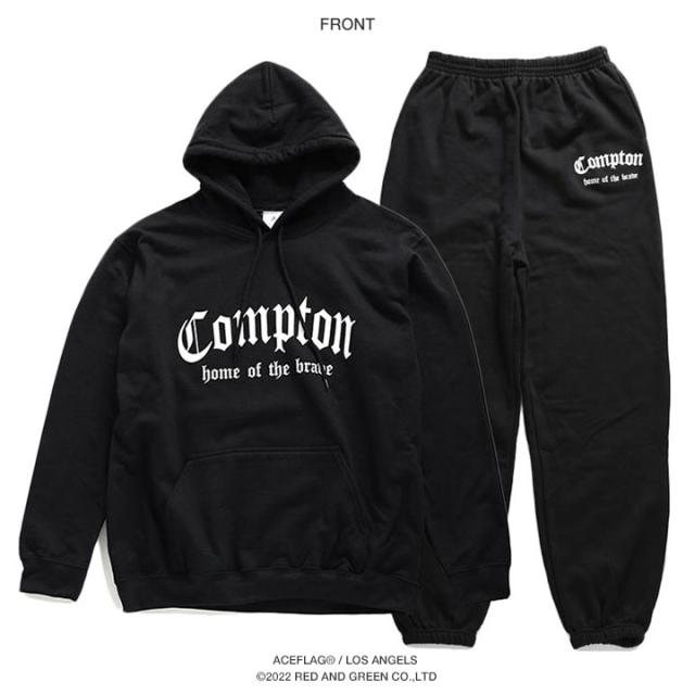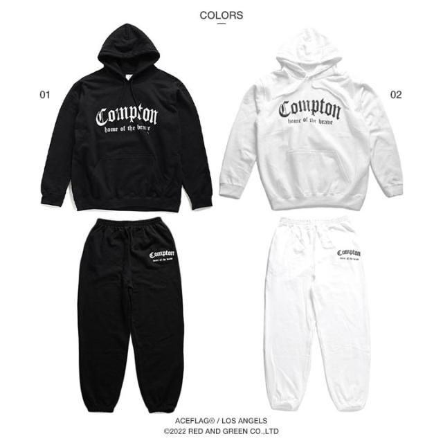 ACEFLAG 上下セット 長袖 ブランド レディース 黒/白 大きいサイズ エースフラッグ セットアップ パーカー フーディ スウェット 上下 スウェットパンツ ゆったり Compton コンプトン LA AF-SE-PA-009