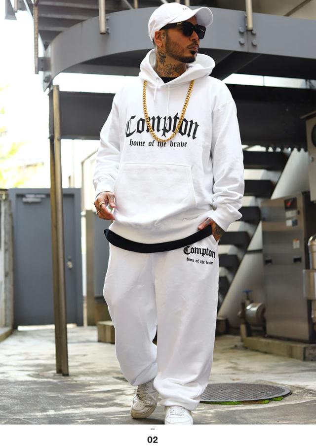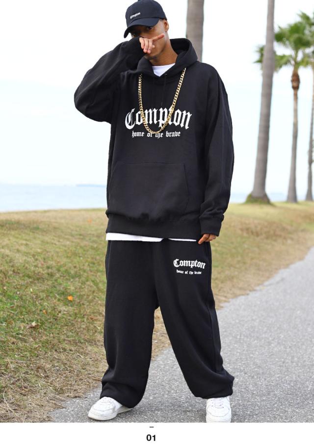 N.W.A.を輩出し、Straight Outta Comptonの舞台としても知られている「Compton」をドロップした(上)がパーカー、(下)がスウェットパンツの上下セット。