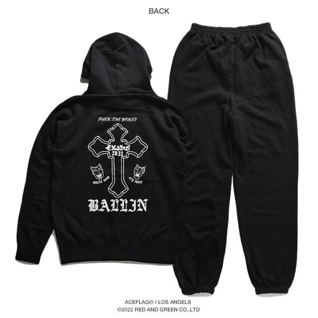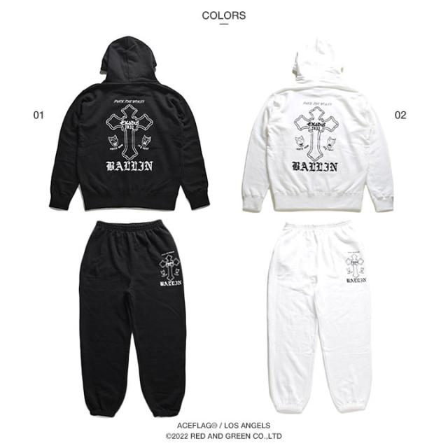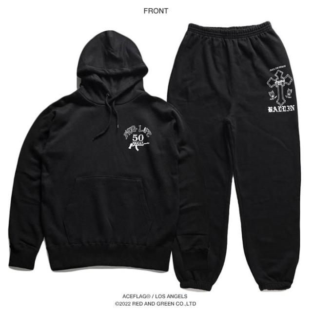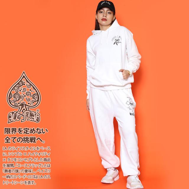 ACEFLAG 上下セット 長袖 ブランド レディース 黒/白 大きいサイズ エースフラッグ セットアップ パーカー フーディ スウェット 上下 裏パイル スウェットパンツ ゆったり THUG LIFE サグライフ クロス AF-SE-PA-007