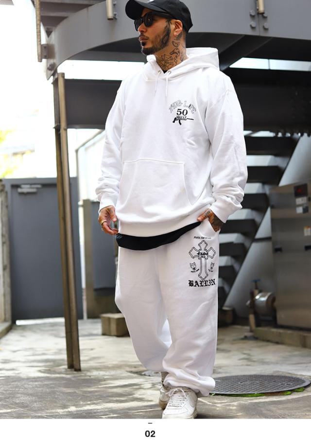 おしゃれ かっこいい ビッグシルエット THUG LIFE サグライフ 長袖 ファッション 服 スウェットパンツ スウェット スケボー トップス ボトム 上下 ダンス セットアップ メンズ