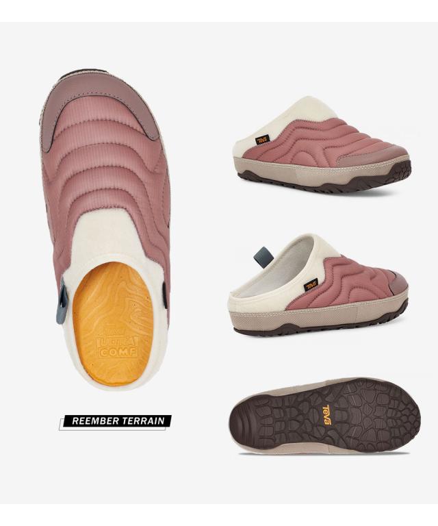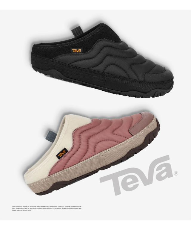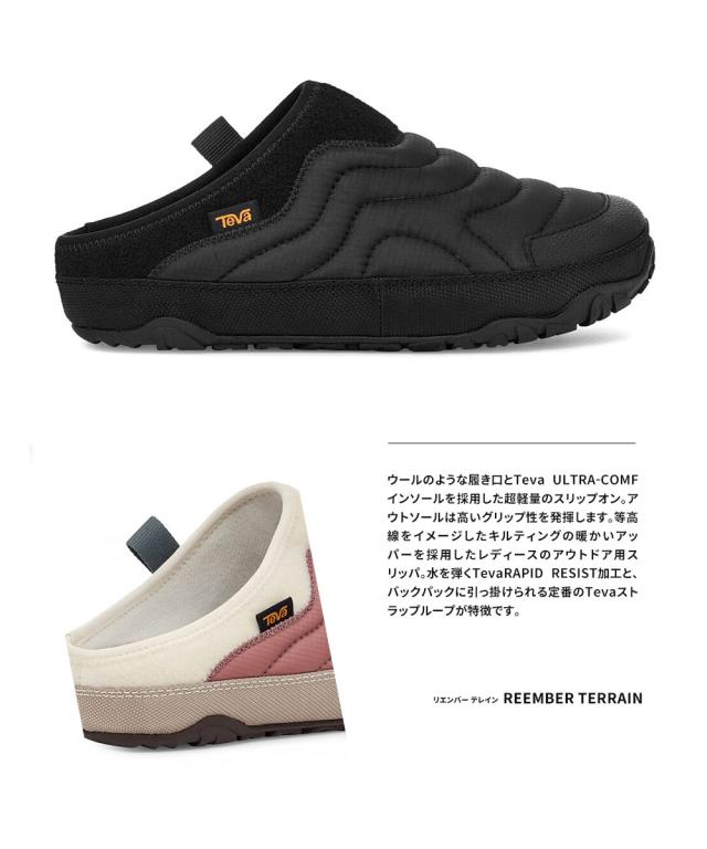 TEVA サボサンダル レディース 冬 裏起毛 暖かい 防寒 クロッグシューズ スリッポン レディース 軽量 防滑 撥水 キャンプ アウトドア スリッパ キルティング ストラップループ キャンプシューズ REEMBER TERRAIN テバ リエンバー テレイン ピンク 黒 ブラック 1129582