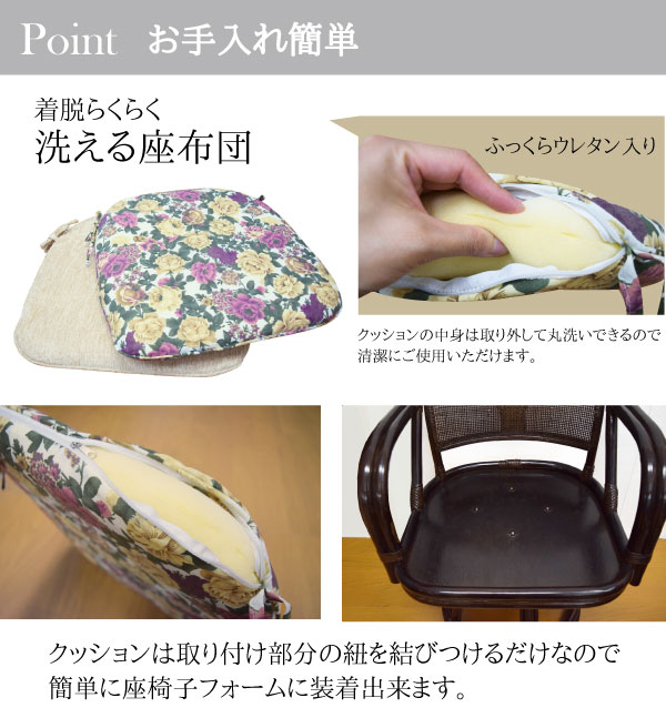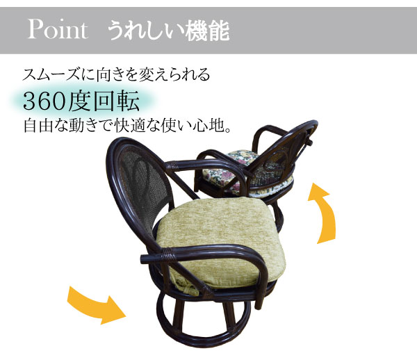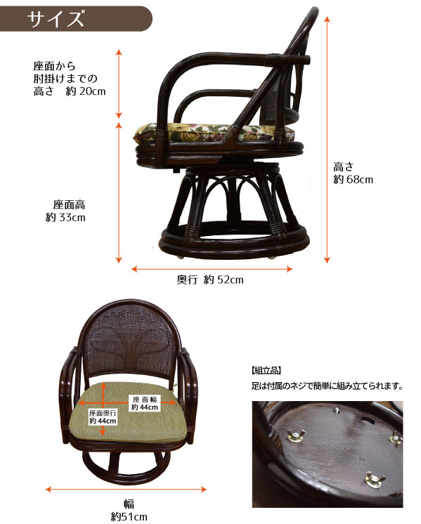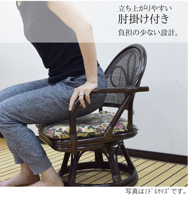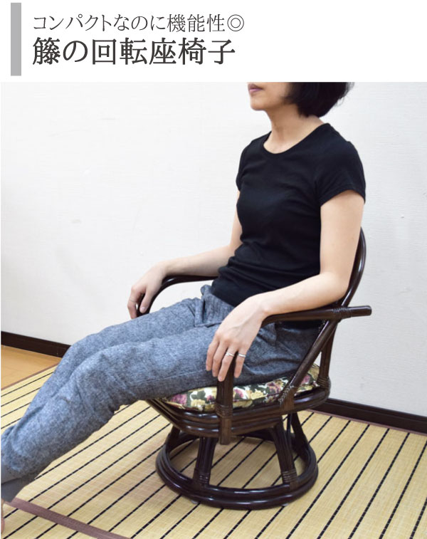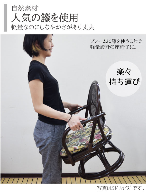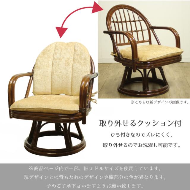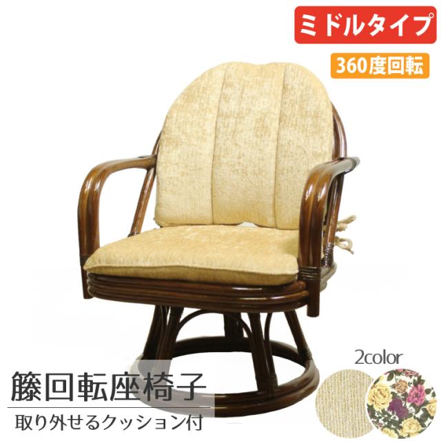 椅子 チェア イス 籐 いす 木製 肘付き 肘掛け 回転 座椅子 クッション ミドルタイプ 約51×52×68×33 天然素材 外せるクッション プレゼント 座椅子 母の日 敬老の日 完成品 iwasa 軽量