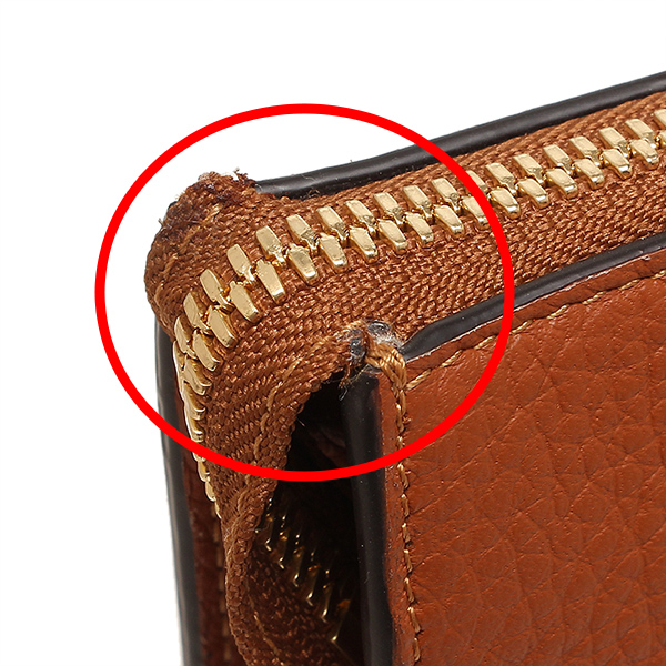 ファスナーの縫い付けが甘くなっております。内側布部分の底にしみがございます。(写真 赤丸部分)