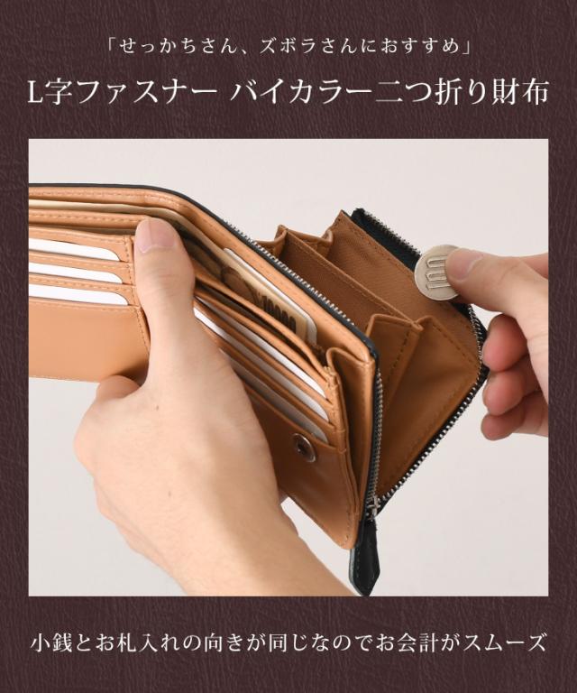 新作 バイカラー メンズ L字ファスナー 二つ折り財布 財布 大容量 コンパクト 札入れ 小銭入れ 仕切り 2つ コインケース カード入れ カードケース カード収納 小さめ 多収納 多機能 ウォレット 男性用
