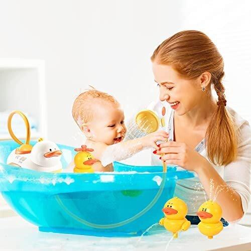 【面白いお風呂おもちゃ】可愛いアヒルの電動シャワーおもちゃセットです。付属の散水おもちゃと組み合わせて遊び、子供の入浴時間を面白くなります。お風呂が苦手の子にも向きます。
