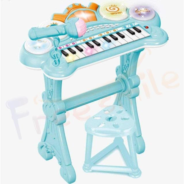 多機能楽器:キーボード24本、楽器8本、リズムパターン4本、打楽器4本、各種音量、カラオケ、携帯電話、MP3などをすべて接続できます。録音再生機能付き、マイク。ティーチングモードボタンを押すと、曲の最初の音符に沿ったキーボードが発光します。いずれかの鍵盤を押しても、メロディーが1つずつ弾かれ、伴奏が入ります。便利な椅子が付いています。