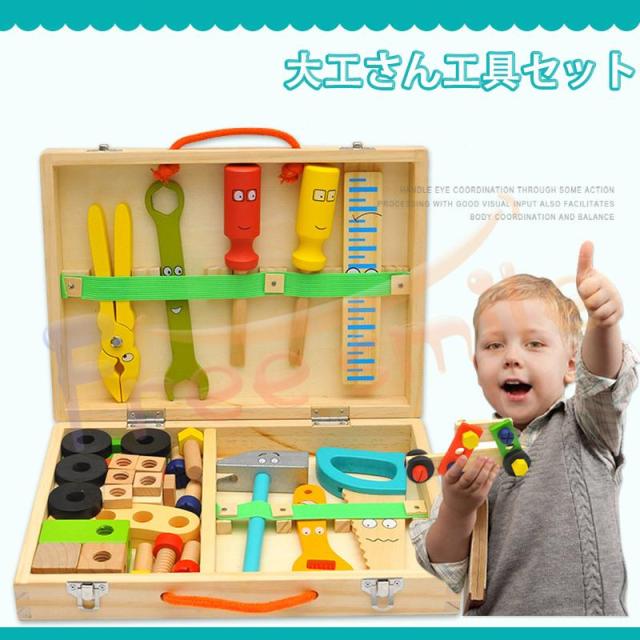 おもちゃ 大工さん 子供用 大工さん工具セット おままごと ごっこ遊び DIY 工具箱 知育玩具 作業道具 指先訓練 収納 木製 子ども キッズ 知育 お祝い クリスマス