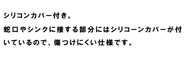 シリコーンカバー付きなので、蛇口やシンクを傷つけにくい仕様。
