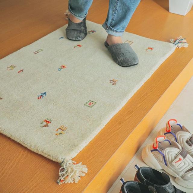 玄関マット ギャッベ 120x70 室内 ギャベ 屋内 風水 北欧 玄関 ウール 高級感 長方形 大きめ 天然素材 手織り ラグ 120 70 本物 インド 厚手 大判 おしゃれ