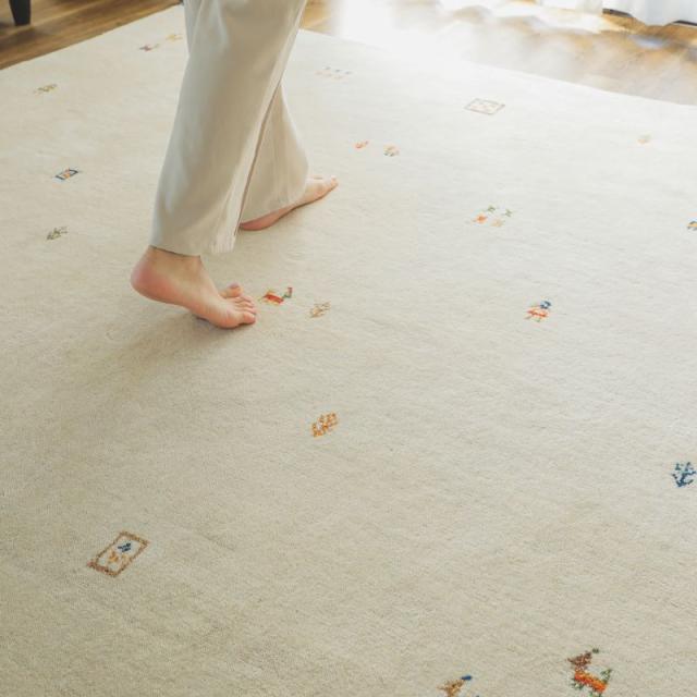 ラグ 2畳 カーペット 冬 ギャッベ 厚手 冬用 ホットカーペット ギャベ 柄 インド 北欧 ウール 床暖房 高級感 本物 正方形 天然素材 羊毛 おしゃれ