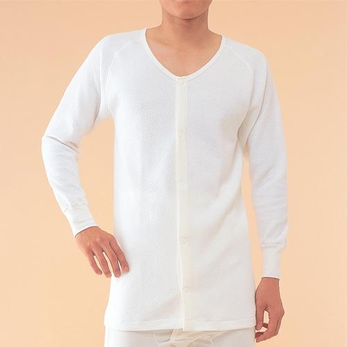 日本製 ワンタッチ肌着 前開き 長袖 ホック式 綿キルト 無蛍光生地 メンズ 男性用 紳士用 肌着 インナー アンダーウェア インナーシャツ シャツ 介護用肌着 綿100% 介護 大人 白 厚手 長袖 あたたかい あったかインナー 暖か 大きいサイズ 秋 冬 秋冬用 送料無料
