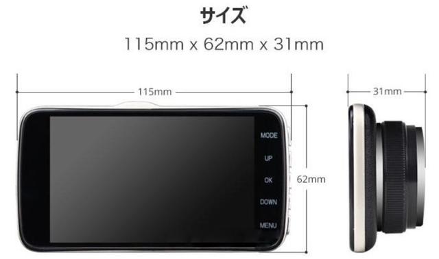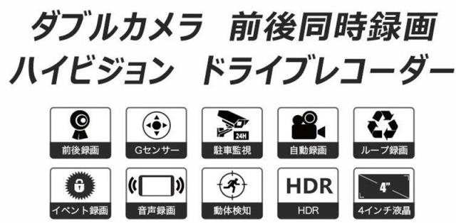 全金属保護ドライブレコーダー リアカメラ付き 2カメラ4.0インチ1080P 高画質 駐車監視 暗視対応 防犯 赤外線付き 動体検知 Gセンサー