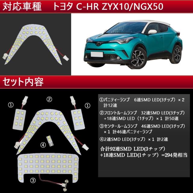 ルームランプセットLED 室内灯 ルーム球 車内灯超白輝光ルームランプ92連 トヨタ C-HR ZYX10/NGX50 全グレード対応 3チップSMD