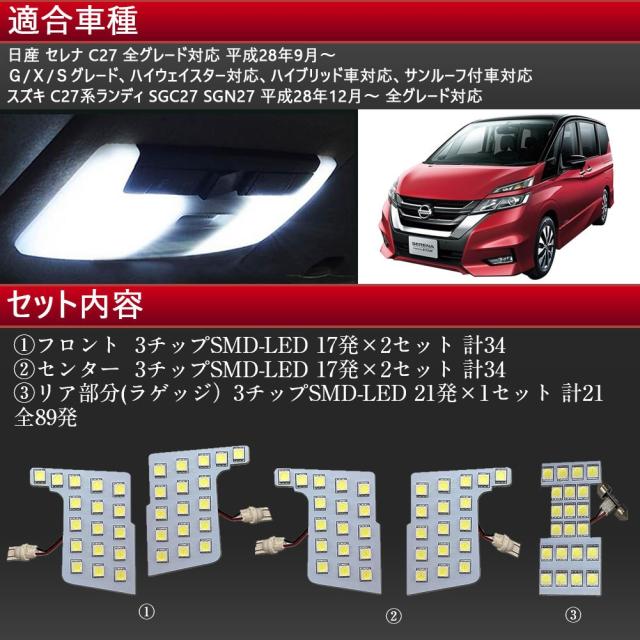セレナ C27 LED ルームランプ 日産 セレナ スズキ ランディ 室内灯 専用設計 爆光 ホワイト カスタムパーツ LED 内装パーツLEDSRL-3C-A0914-C27