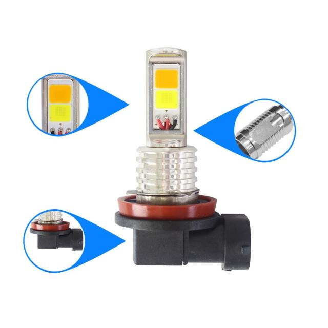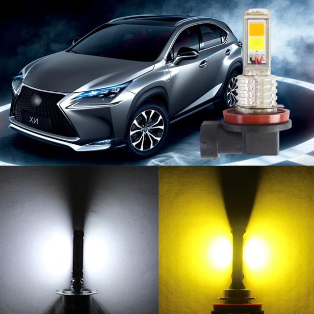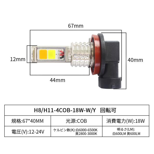 新型高輝度 H8/H11 フォグランプ COB バックアップランプ ブレーキランプ テールランプLEDヘッドライト 2個セット ホワイト/アンバー