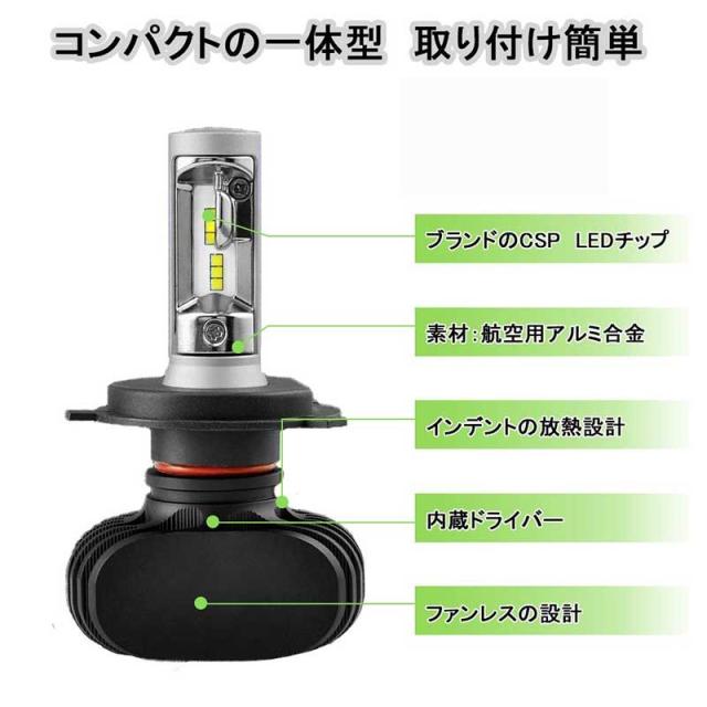 LEDヘッドライトバルブ H4 Hi Lo S1 6500k 車検対応 遮光板でカットライン 12V専用 8000LM 防水 取り付け簡単 2本