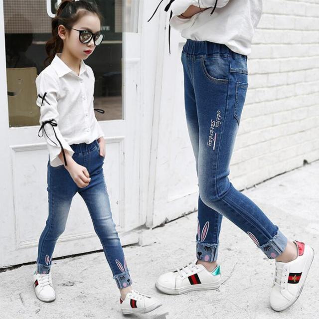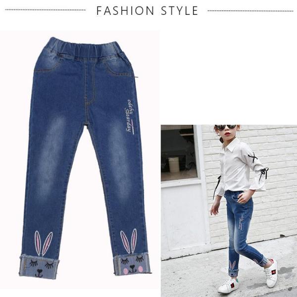デニムパンツ 女の子 ボトムス ジーンズ ズボン 可愛い猫の柄 萌え かわいい 学生 ガールス ズボン カジュアル おしゃれ