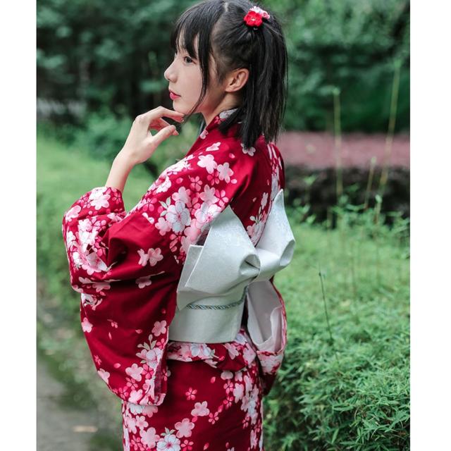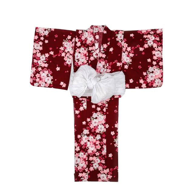 レディース浴衣 単衣着物 単衣 仕立て上がり 洗える ワインレッド 桜の柄 高級 綿麻 花火大会 お祭り
