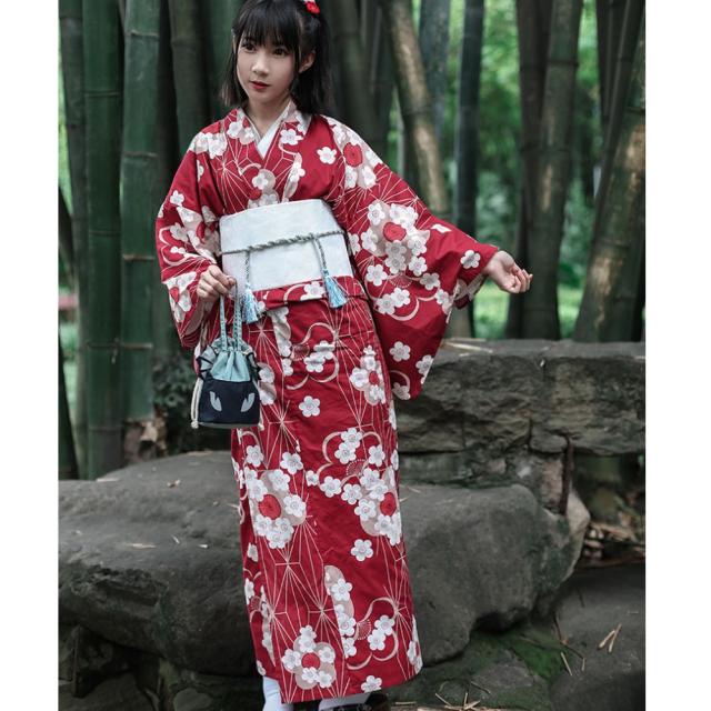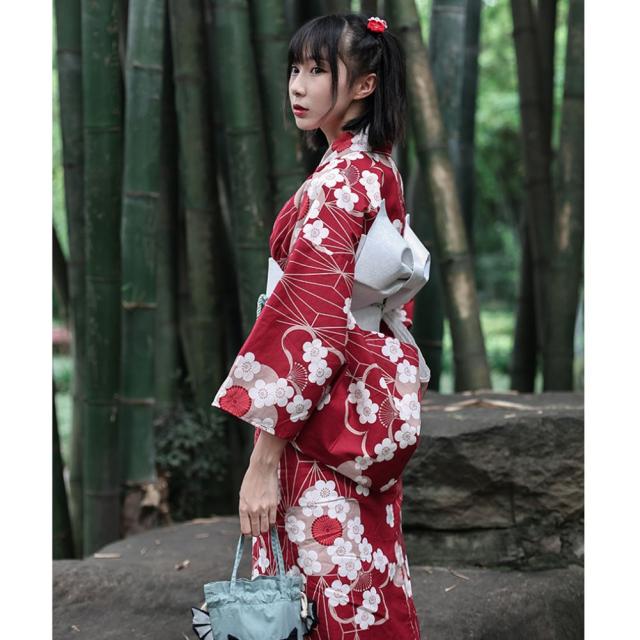 浴衣 レディース 着物 綿 仕立て上がり 洗える 単衣着物 単衣 花柄 レッド 花火大会 お祭り