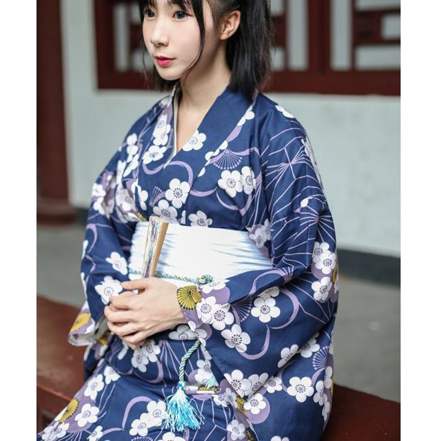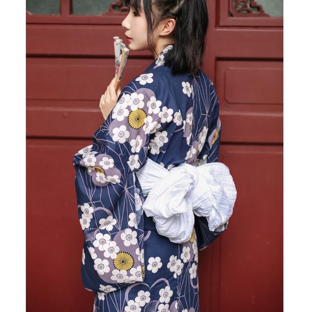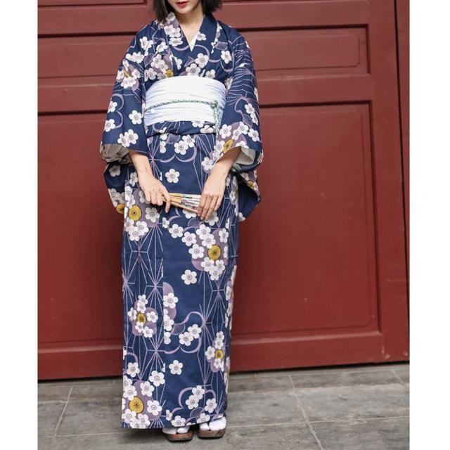 レディース 浴衣 単衣着物 単衣 綿100 仕立て上がり 洗える ブルー 桜の柄 高級 花火大会 お祭り