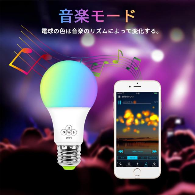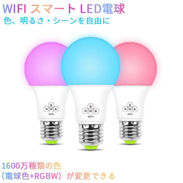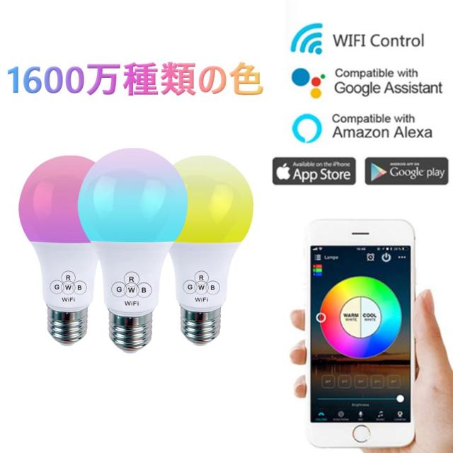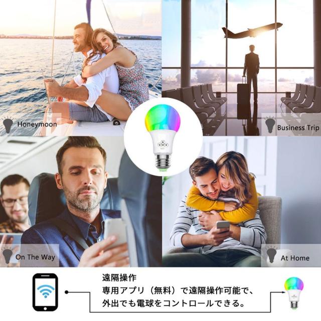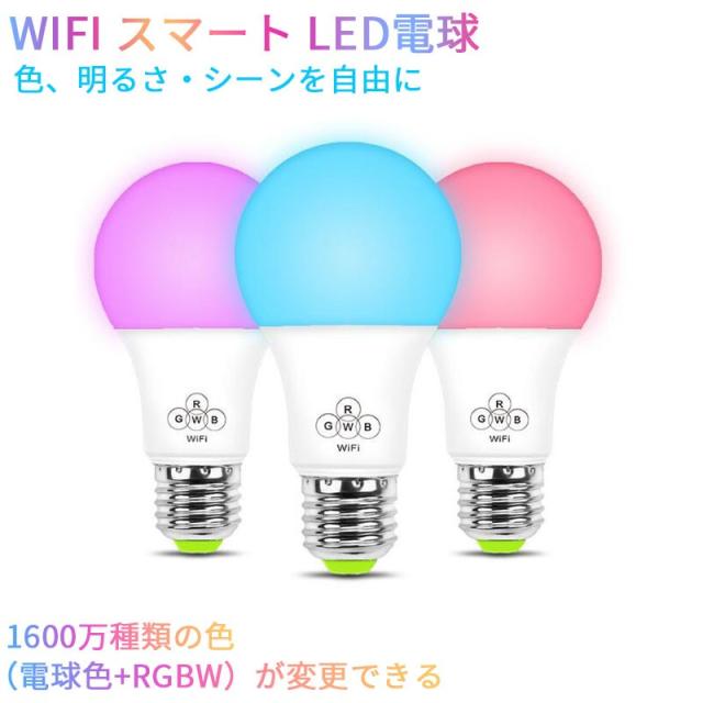 WIFI スマート LED電球 RGBW 1600万色 調光調色 40W相当 E26口金