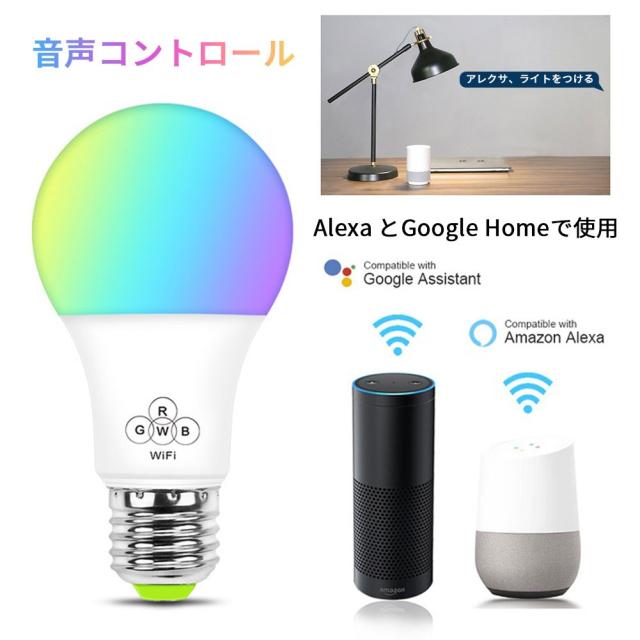 スマート LED電球 電球色 AlexaとGoogle Homeで使用 玄関灯 非常灯 寝室照明 調光 ワイヤレス APPコントロールE26口金 40W相当