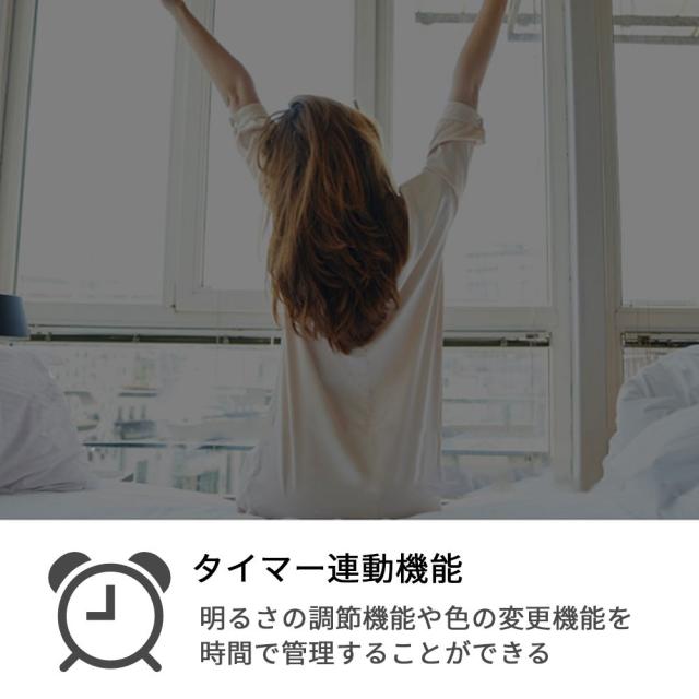 寝る前に消灯時間を設定しておけば設定した時間に自動消灯、時間になったら照明を消すことで消し忘れを防ぎ省エネに役立てたり。