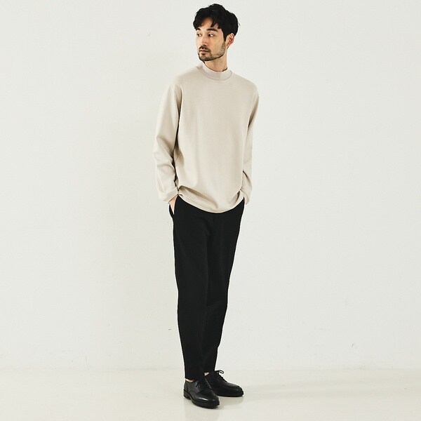 品のあるセットアップやフレアパンツ、スラックスなどスムースな生地感のボトムから、デニム、チノ、カーゴパンツ等カジュアルなボトムにもピッタリです。