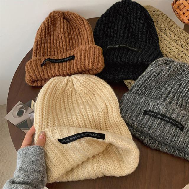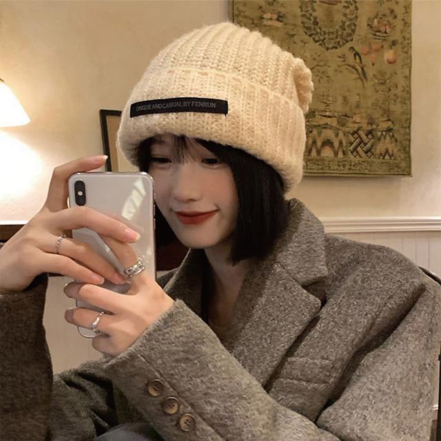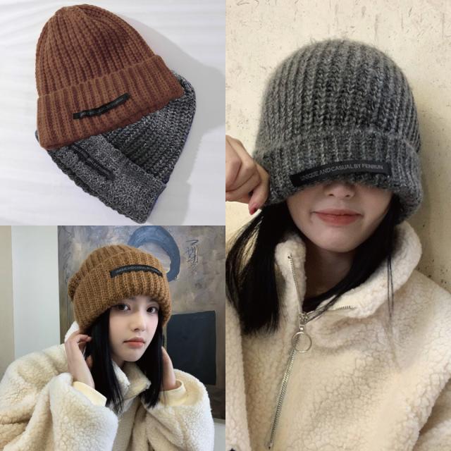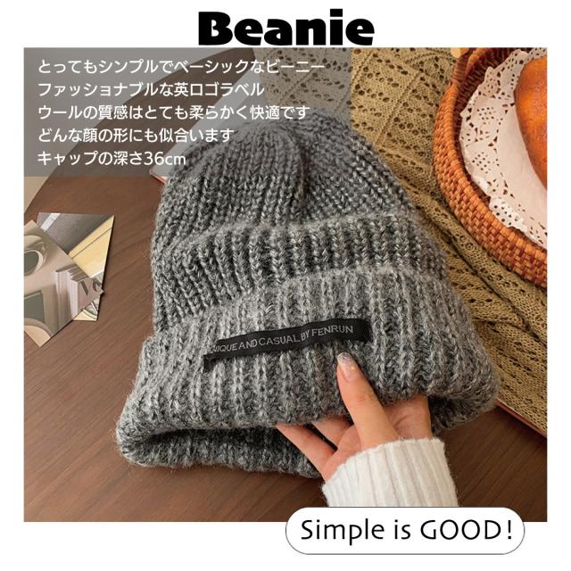 とってもシンプルでベーシックなビーニーファッショナブルな英ロゴラベル。
