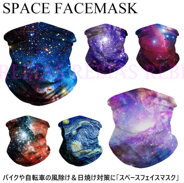 スペース ネックガード フェイスマスク フェイスガード 日焼け防止 宇宙 銀河 バイク 自転車 風除け